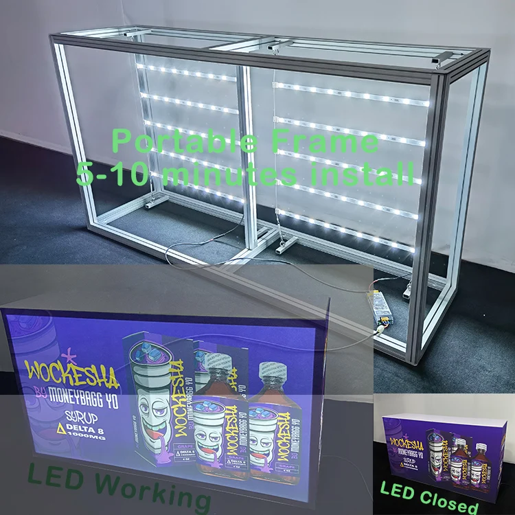 New Design 6ft Portable Trade Show Advertising Frameless Aluminum Lockable Seg Backlit Modular Promotion Counter